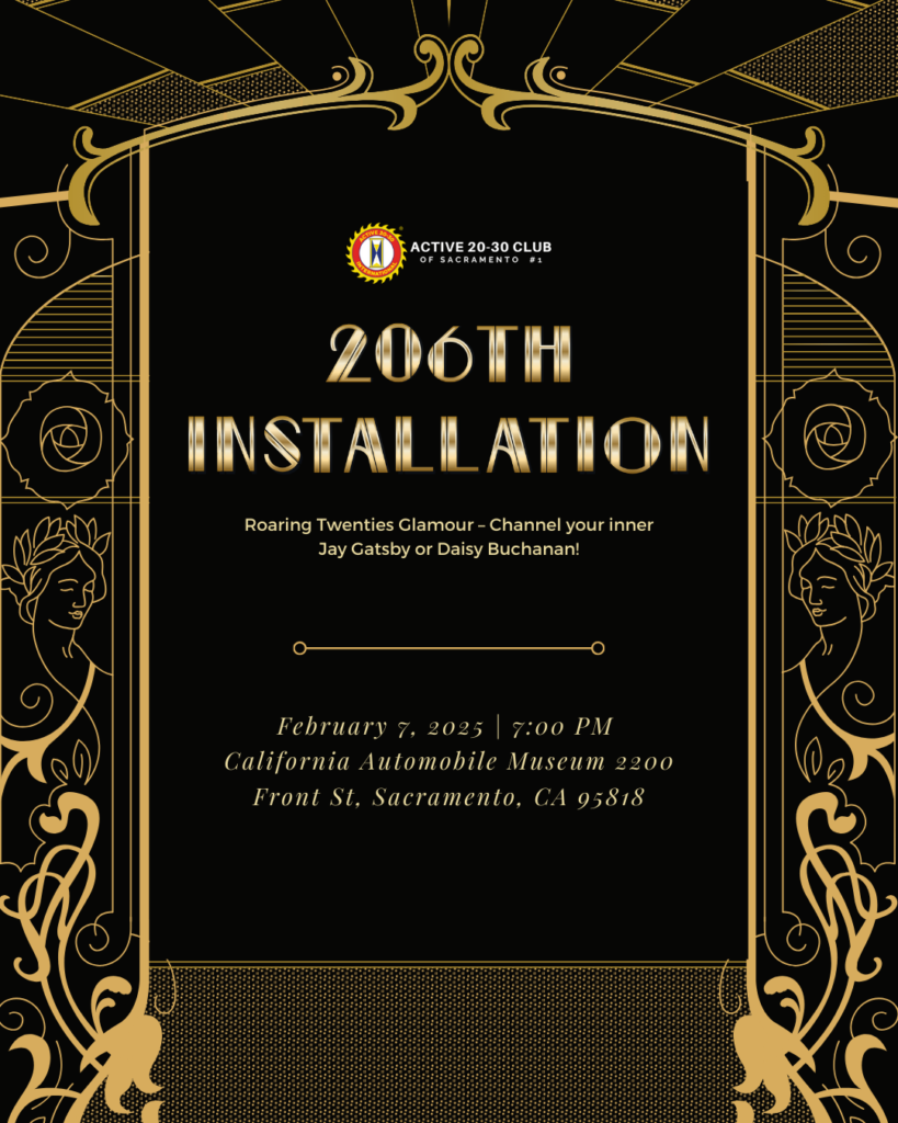 Get ready to step back into the glitz and glamour of the Roaring Twenties! 🎉 Join us for the 206th Installation of the 20-30 Club with a Great Gatsby-Themed Party at the iconic California Automobile Museum.